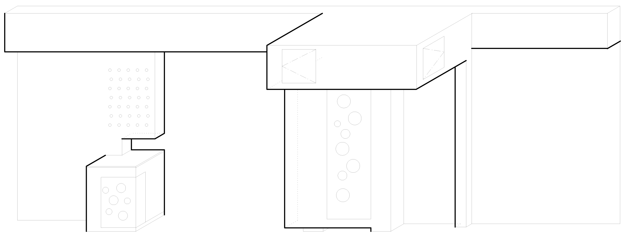 1) It divides the apartment into two halves. One half is the “smooth” side with white skim coat plaster as wall surfaces. Everything is smooth and white, very pure and clean. The other half of this OSB board is the “rough” half, with gray scratch coat plaster, cork wall and black slate tile to define spaces and surfaces.